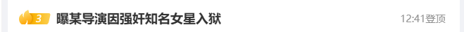2月25日,有博主爆料,某导演曾涉嫌侵犯女演员被拘留,并且获刑。