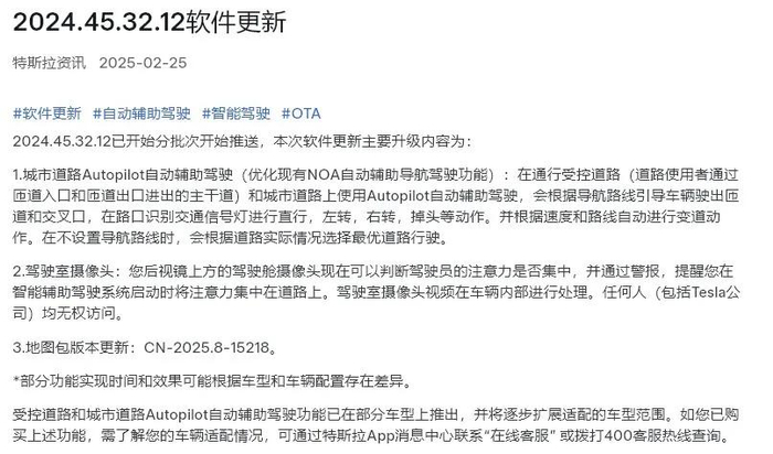 继2月24日晚间市场传出特斯拉中国即将对FSD作重大更新后,2月25日早间特斯拉即官宣证实了这一变动。