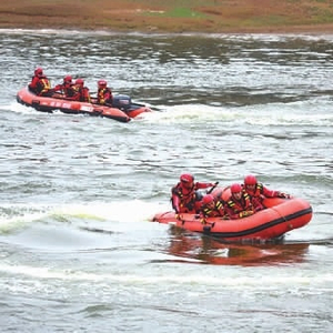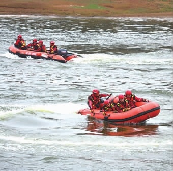 2月25日,郴州市嘉禾县周家洞水库,应急队员正在进行水上救援演练。当天,该县举行防汛地灾军地联合应急演练,进一步增强人民群众防汛抗灾意识,提升救援队员的快速反应和抢险救援能力。