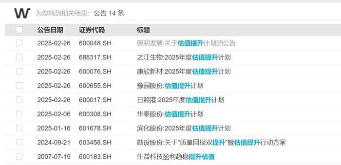 以“估值提升”作为关键词进行搜索,可以发现,今年以来已有多家公司发布相关计划,但头部巨头公司仍然少见。