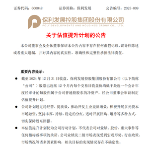 千亿元市值地产巨头保利发展,发布估值提升计划