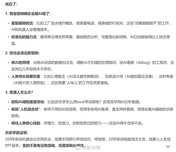 DeepSeek回答AI是否会抢走人类饭碗