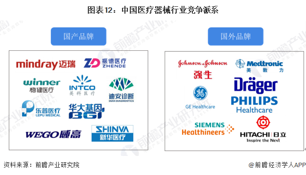 我国医疗器械行业竞争派系主要分为国产品牌和国外品牌,其国产品牌以迈瑞医疗、稳健医疗、英科医疗等企业的医疗器械品牌为代表;国外品牌则以强生、西门子医疗、GE、飞利浦等企业的医疗器械品牌为代表。