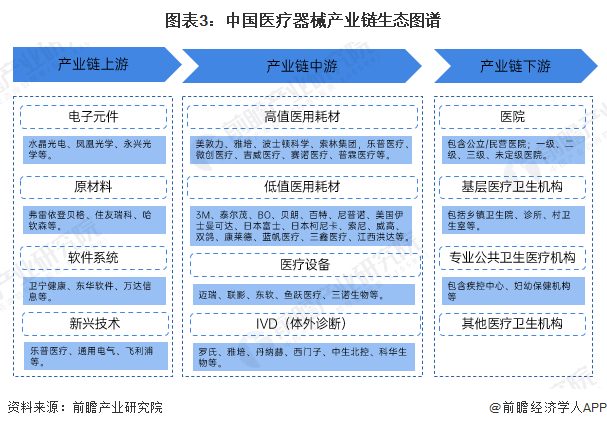 在行业上游领域,代表企业主要有水晶光电、住友瑞科、卫宁健康、乐普医疗等企业,中游企业主要有美敦力、雅培等国际企业和迈瑞医疗、鱼跃医疗等国内企业,产业链下游主要为医疗卫生机构、公共卫生机构,其他医疗机构和第三方检验/体检机构等。