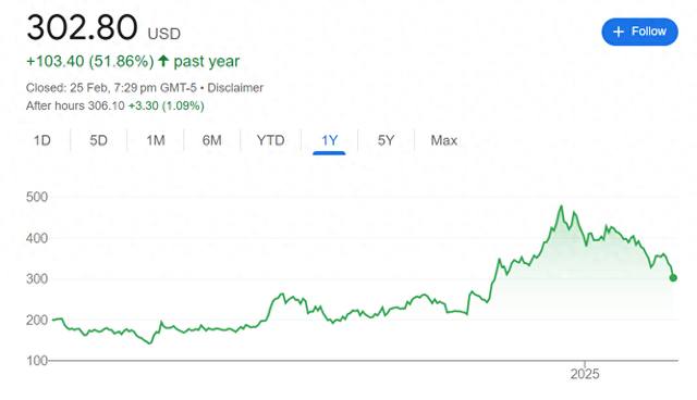 过去一年特斯拉股价
