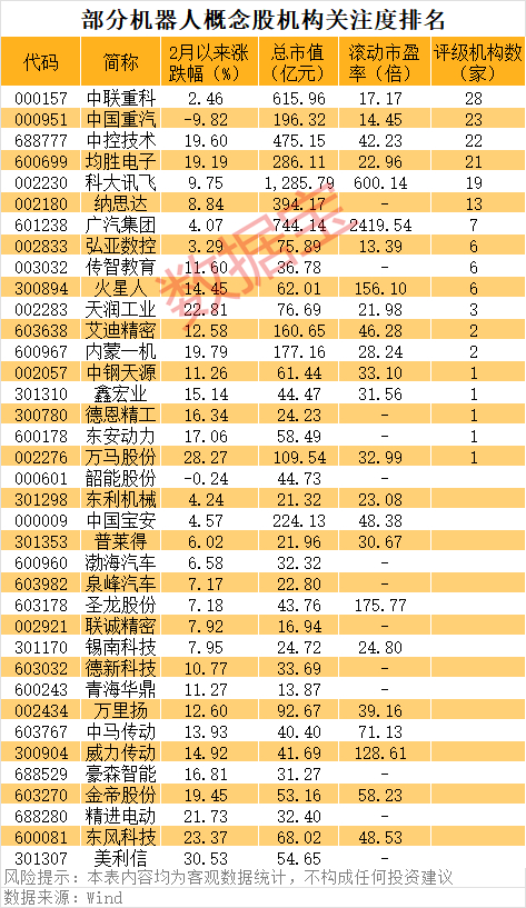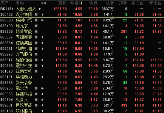 人形机器人、减速器概念牛股成群,万达轴承和骏创科技两只个股2月以来股价翻倍,新时达、杭齿前进、双飞集团、明阳科技等20多只个股涨超50%。随着行情的进一步扩散,尚处于低位的概念股或将迎来补涨。