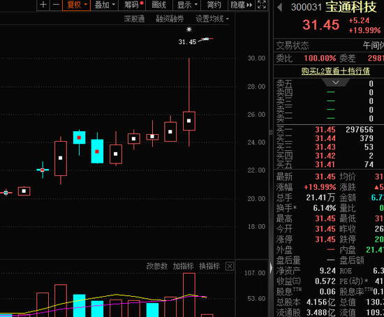 早盘最强势的个股当属宝通科技,开盘即20cm涨停,公司在近期的调研中透露了和宇树机器人合作的内容。