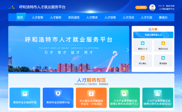 “呼和浩特市人才就业服务平台”网页端或