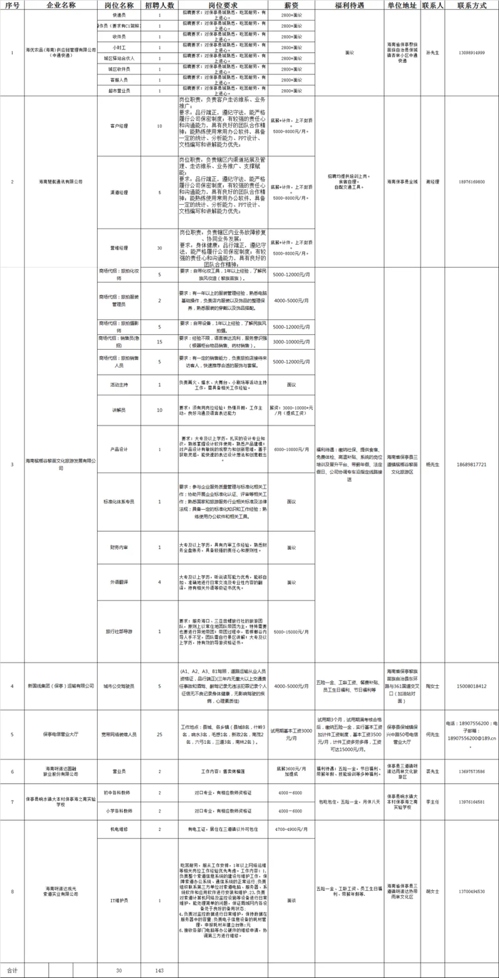 据了解,该招聘活动面向保亭高校毕业生;退役军人、农民工;长期登记失业人员、就业困难人员、灵活就业人员等群体。