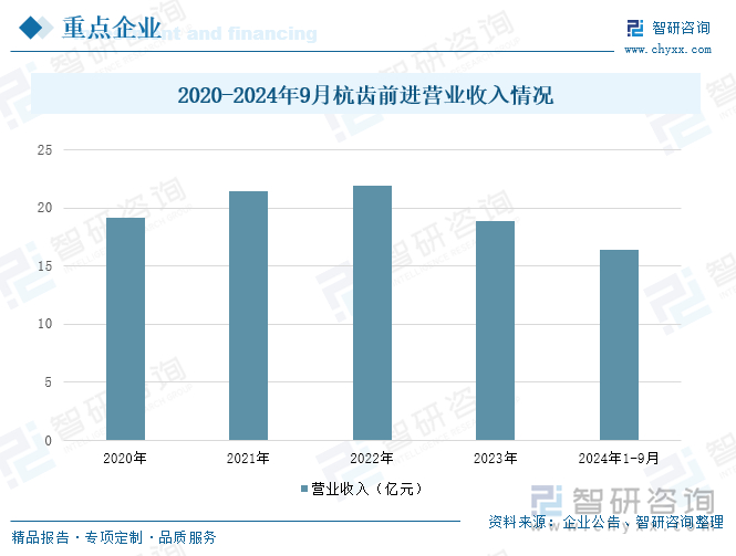 杭州前进齿轮箱集团有限公司(简称“杭齿前进”)是一家专业设计、制造传动装置和粉末冶金制品的大型企业,创建于1960年。公司现有职工近2800名,拥有9个分厂和多家控股、参股企业,资产总额庞大。杭齿前进在传动装置领域拥有深厚的技术底蕴和丰富的制造经验,其“前进牌”产品在国内享有很高的声誉,并远销世界多个国家和地区。在风电齿轮箱业务方面,杭齿前进也取得了显著的成果。公司凭借先进的技术和优质的产品,赢得了市场的广泛认可。杭齿前进的风电增速箱产品具有高效、可靠的特点,能够适应不同风力和环境条件的要求。同时,公司还积极开拓国际市场,与多家国际知名企业建立了长期合作关系,为全球的风电市场提供了优质的产品和服务。2023年,杭齿前进营业收入为18.83亿元,同比减少14.25%。2024年1-9月,杭齿前进营业收入为16.42亿元,同比上年同期增长14.58%。