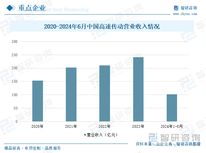 中国高速传动设备集团有限公司(简称“中国高速传动”)是一家以齿轮箱与传动技术解决方案为核心的全球领先企业。公司创建于1969年,旗下南高齿是中国名牌及江苏省重点培育和发展的国际知名品牌。中国高速传动以“为人类文明传递进步动力”为使命,致力于为客户提供高效、可靠的动力传动解决方案。在风电齿轮箱业务布局方面,中国高速传动拥有深厚的技术积累和丰富的市场经验。其产品遍布全球多个国家和地区,能够适应各种苛刻环境,如严寒、酷暑、高海拔、低风速和海洋气候等。中国高速传动与众多国内外一流风机厂商保持着长期战略合作关系,提供涵盖1.5MW-11.XMW的全系列风电齿轮箱产品,并配套完善的服务网络,为全球的风电市场提供可靠的技术支持和服务。2023年,中国高速传动营业收入达240.77亿元,同比增长14.22%。2024年1-6月,中国高速传动营业收入为101.6亿元,同比上年同期减少9.75%。