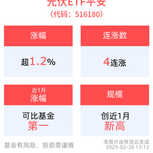 拉长时间看,截至2025年2月25日,光伏ETF平安近1周累计上涨2.49%,涨幅排名可比基金1/10。规模方面,光伏ETF平安最新规模达6464.05万元,创近1月新高。