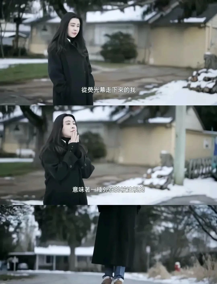 视频中,留着黑色长发的王祖贤,缓缓走在雪地中。