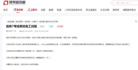 而该留言也在最快时间内得到了官方回复,并释放了长春地铁7号线的一条最新消息。