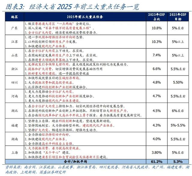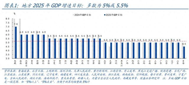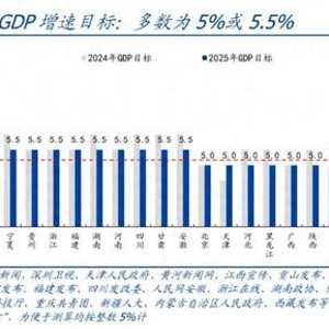 >GDP目标:从地方两会看,多地GDP目标为5%或5.5%,31地加权平均5.3%,过往与全国目标一致或较接近的北京、上海均为5%左右,预计2025年全国GDP目标大概率仍定为5%左右偏高水平。