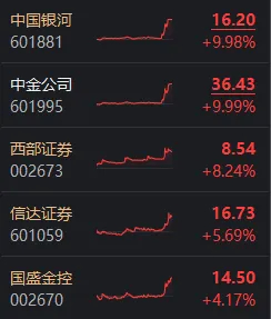 最后,证券板块今天尾盘明显异动,带动了证券ETF等相关产品拉升。从个股来看,中金公司、中国银河涨停——显然,二者合并的预期再度被拉起。