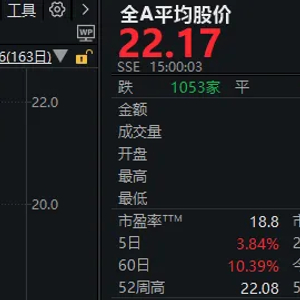 Wind数据显示,全A平均股价今天盘中创下了22.22元的阶段新高,日K线也录得6连阳(含假阳线)。在昨日推送中我们提到,从该指标表现来看,(昨日的)回调幅度其实很有限。