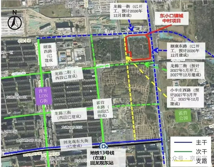 其中,东小口镇城中村改造项目临近地铁13号线回龙观东站、8号线回龙观东大街站,紧邻霍营公园,附近有人大附昌平小区、首师大附回龙观育新学校,也有积水潭医院回龙观院区等配套。