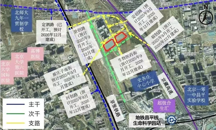 中关村生命园三期及“北四村”棚改项目B地块的区位不错,位于京藏高速和京新高速之间,距离地铁昌平线生命科学园站约1.4公里。周边有101中学昌平实验学校、规划的北师大九年一贯制学校、北大国际医院等配套。