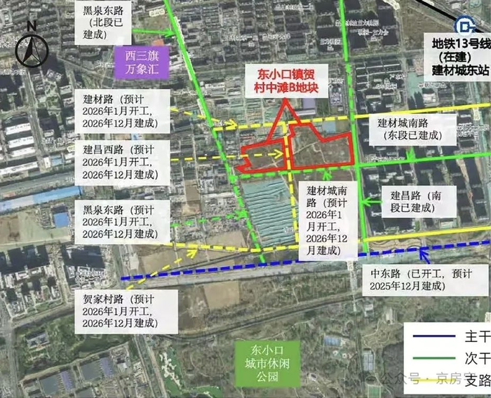 贺村、中滩村地块临近在建的13号线建材城东站。附近西三旗万象汇、清华附小昌平学校等配套。