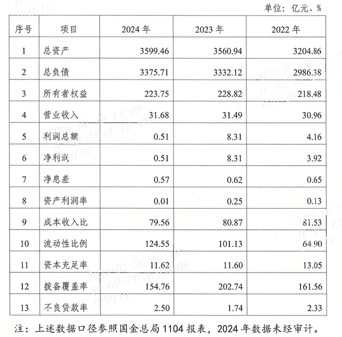 2月25日,山西银行在中国货币网披露的2025年同业存单发行计划中,公布了2024年的财务状况,实现营业收入31.68亿元,同比微增0.6%;实现净利润0.51亿元,同比大幅下降93.9%。