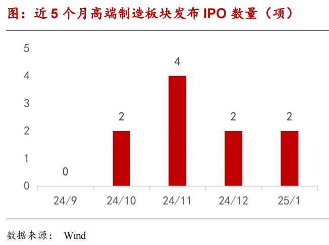 2025年1月1日- 2025年1月31日时间区间内,高端制造板块共计1家企业进行战略配售,为兴福电子,企业于2025年1月22日登陆科创板。
