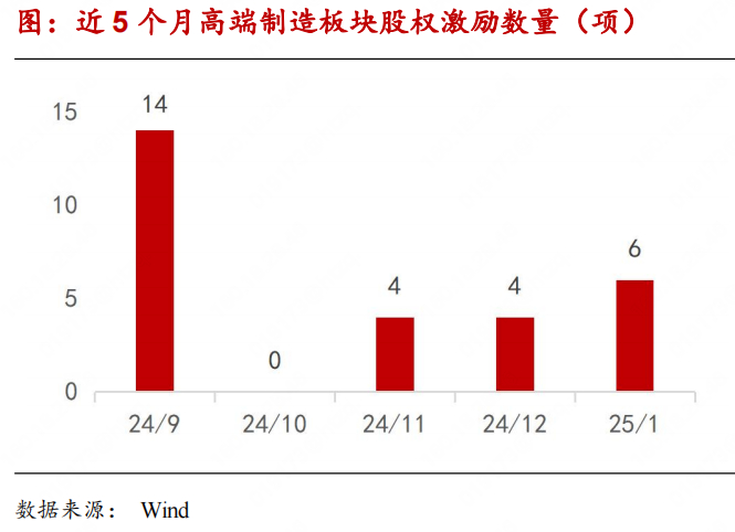 2025年1月,高端制造板块共计6家企业进行股权激励事项,其中赛微微电事项已实施;国科微、大豪科技发布董事会预案;迅捷兴、步科股份两家事项股东大会已通过。