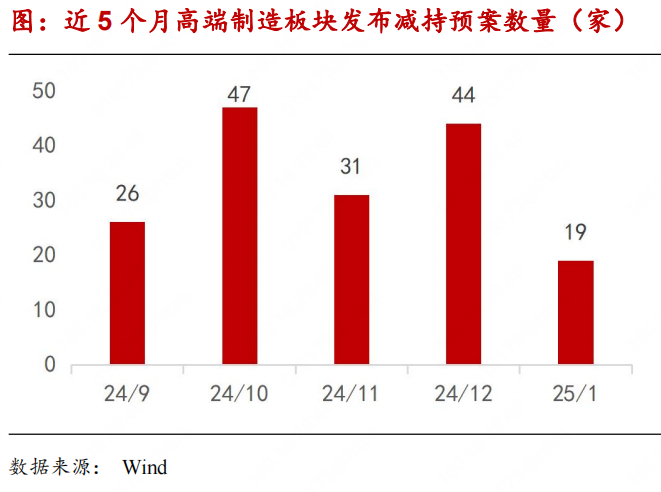 2025年1月,高端制造板块内共19家企业发布股东拟减持公告,减持数量上较上月大幅下降。股份减持相关要素呈现以下特征:(1)减持方式为大宗交易、集中竞价、询价转让;(2)减持股东类型为股东、高管、个人。