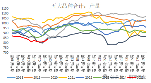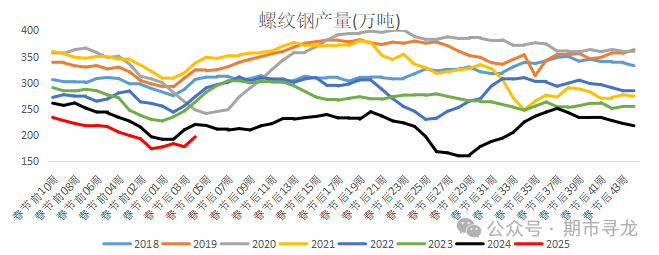 昨天我复盘文章详细分析了铁矿过剩逻辑,文章链接:商品又来到多空决战点位,战略性看空远月铁矿!当时我对于铁水减产是保守估计1000万吨,现在直接拉到5000万吨,完全超出我的预估,也基本上超出市场预估。因为当下钢厂利润近几年长期亏损,螺纹及热卷、焦煤、焦炭持续下跌,但是铁矿价格维持高位,损害了国家利益;同时近期国外对中国钢材出口实施关税政策,钢铁行业内忧外患,五大材产总产量维持近几年的历史低位,其中螺纹产量同比历史低位,热卷产量居高,这也是导致近期卷螺价差收窄的原因。