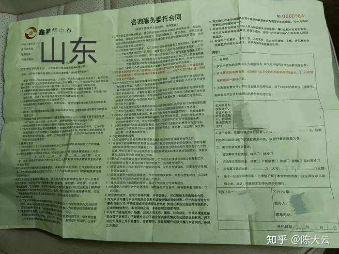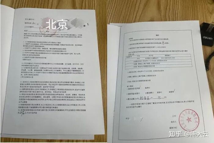 在解答前三个风险点前,我们先来看一下跟贷款中介签的这些“合同”,我分别整理了上海、北京、山东三个地方的合同各一份,如下图所示:
