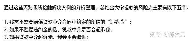 因为贷款中介压根就不会起诉你,所以根本无需担心是否被起诉,起诉之后会不会败诉,需不需要赔偿违约金等一系列问题了。