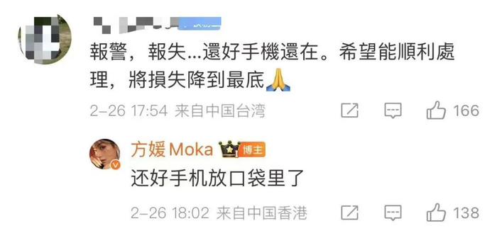 方媛还在评论区回复网友称,“已经报警了”,“还好手机放口袋里了”。
