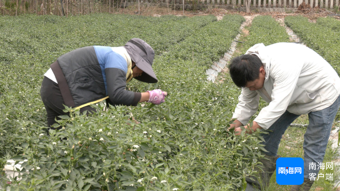 “新品种辣椒不错,自去年12月开始采摘以来已收入3万多元。”2月26日,在三亚市吉阳区博后村的辣椒地里,村民蒲向东和妻子一边忙着采摘,一边高兴地说。虽然只种了3亩地,但是大约每隔一周就能采摘一次,并且有企业保底收购,这极大地增强了他继续种植的信心。蒲向东口中的“新品种辣椒”,正是博后村去年引进的樟树港辣椒的姊妹品牌—阳雀湖炒肉辣椒。