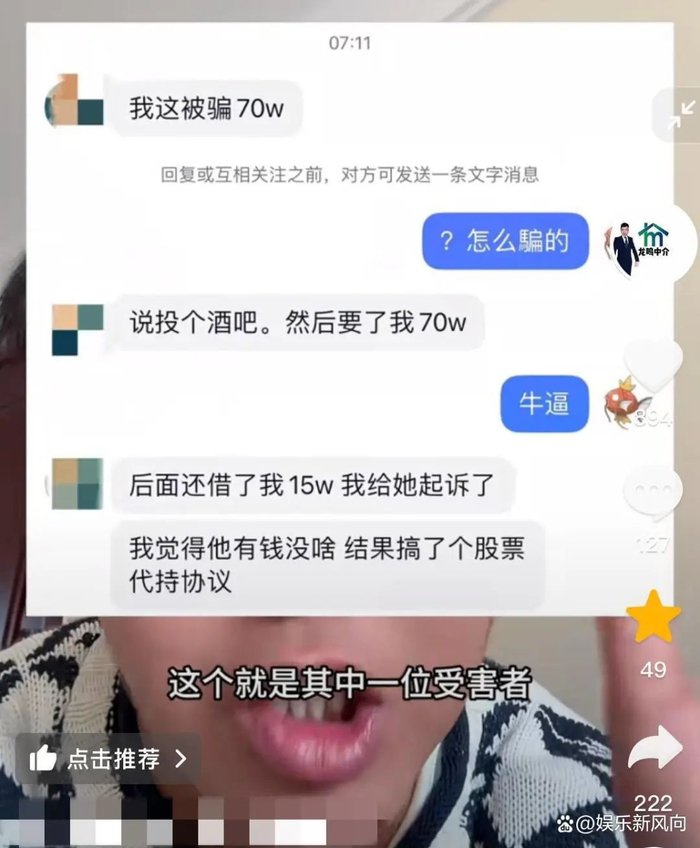 部分网友还晒出了与王政源的聊天记录、转账记录作为佐证。这些证据显示,王政源确实存在收费带人炒股的行为,并且有许多粉丝因此遭受了巨额亏损。