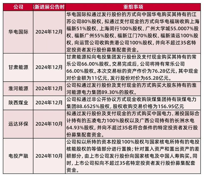 表4:2024年公告并购与重组事项电力企业及最新进展