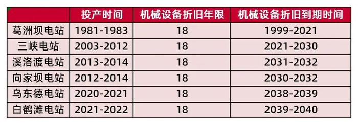 表16:长江电力六大电站机械设备折旧到期时间