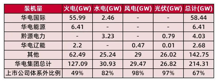 表6:华电集团及下属上市公司装机情况