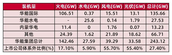 表7:华能集团及下属上市公司装机情况