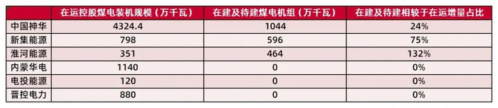 中国神华、淮河能源、新集能源均仍有较大规模在建及待建项目,占在运项目比重分别为24%、132%、75%。