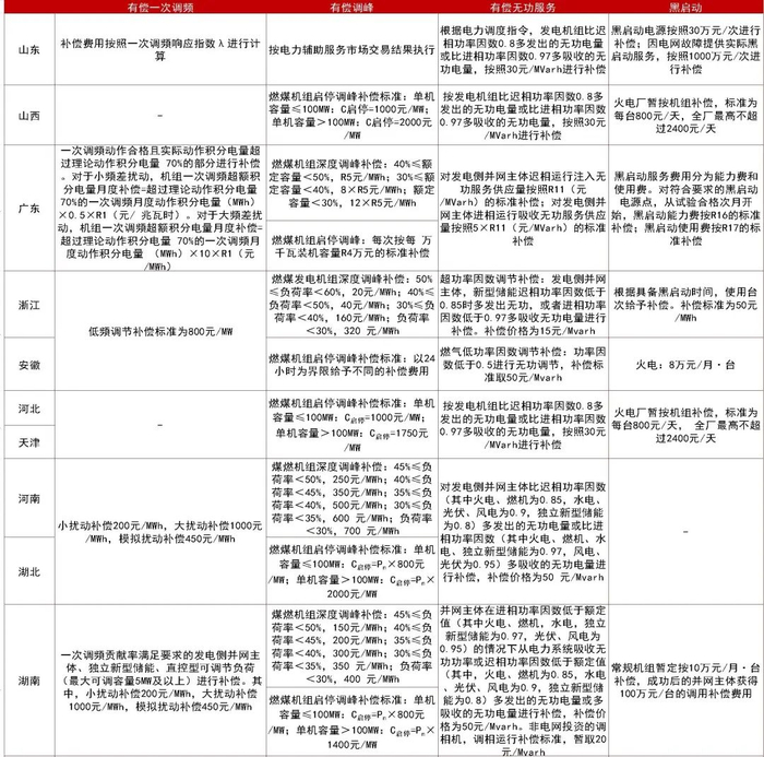 图17:各省辅助服务补偿标准