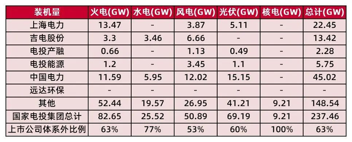 表9:国家电投集团及下属上市公司装机情况