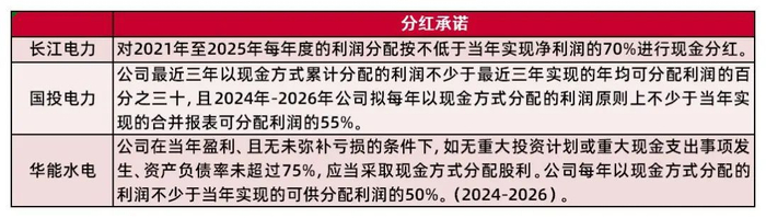 资料来源:长江电力未来三年(2022-2024)股东分红回报规划,国投电力未来三年(2024年-2026年)股东回报规划,华能水电未来三年(2024年-2026年)股东回报规划,山西证券研究所