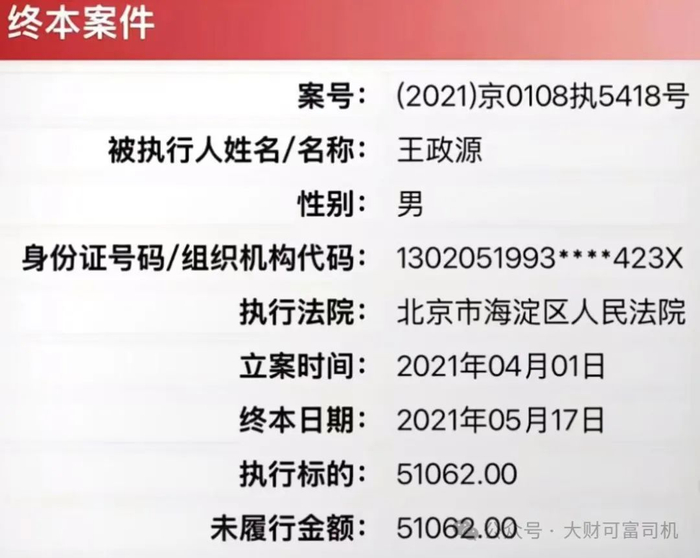 而王政源在执行案件中的身份证是130开头的,显示其为河北人。他也曾说过父母都是苦出身,从河北唐山考到北京,父母是中建系旗下出来创业者,后来因为意见不合才离婚的。因此,网传王政源后妈是童瑶这件事完全就是扯淡!