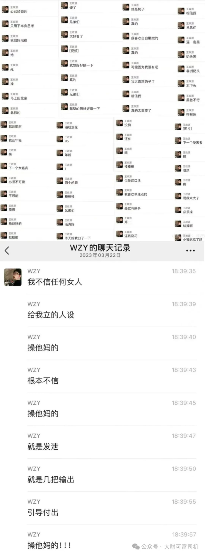 除此之外,更有网友曝光了王政源在群里发布的辱女言论,简直不堪入目!