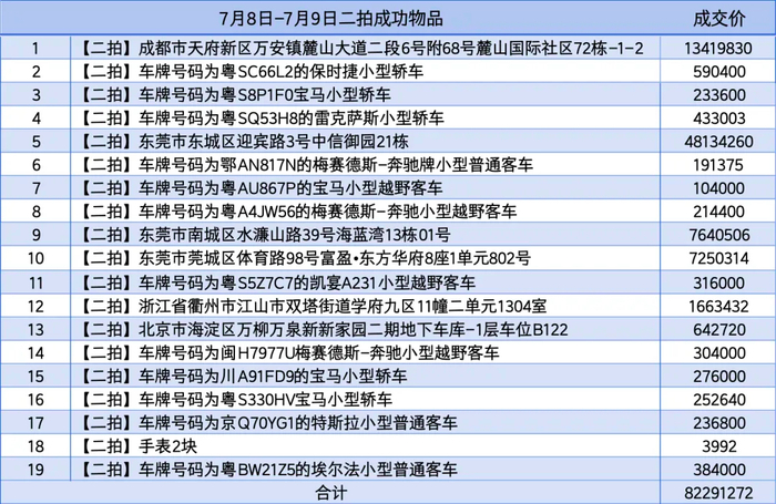 二拍合计19件物品拍卖成功,合计收回8229万,主要还是房子卖出去了。