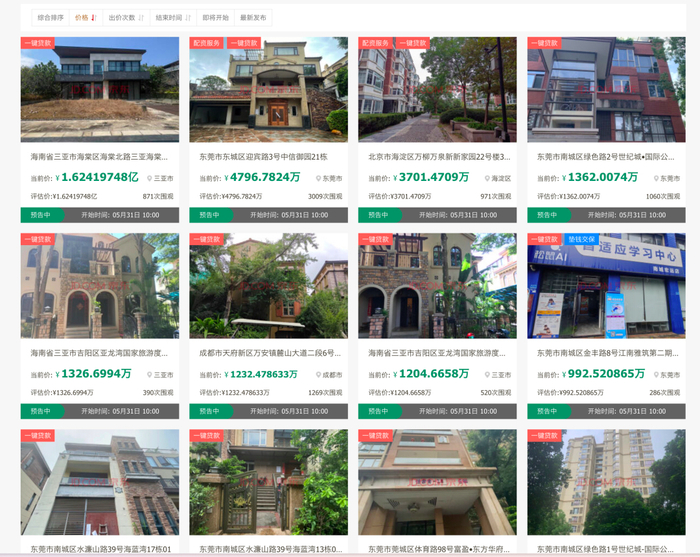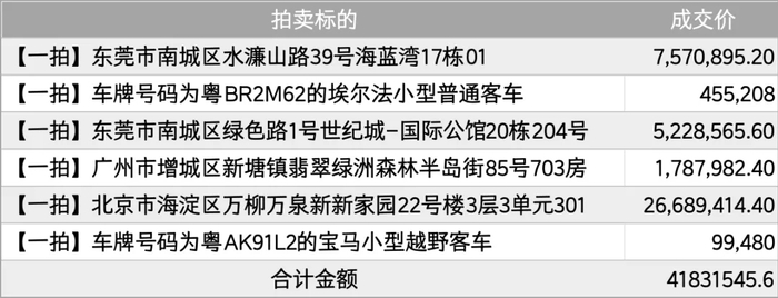经过统计,大概有103件资产准备拍卖,包括酒店、别墅、住宅、豪车、办公物品,甚至日用品等等。