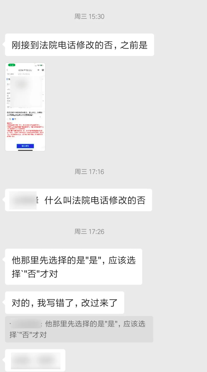 另外有部分出借人接到法院的电话和短信提醒,因为选项选择错误了,要求他进行修正或补充材料。