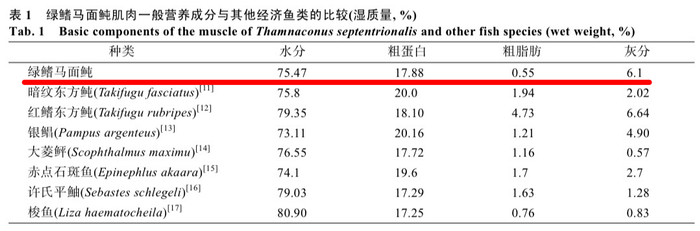 [2]徐大凤,刘琨,王鹏飞,等.绿鳍马面鲀肌肉营养成分分析和营养评价[J].海洋科学,2018,42(05):122-129.