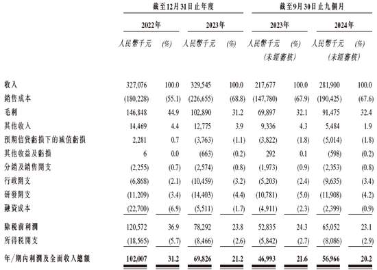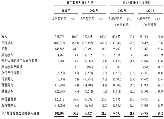 招股书显示,在过去的2022年、2023年和2024年前九个月,海伟电子新材料的营业收入分别为人民币3.27亿、3.30亿和2.82亿元,相应的净利润分别为人民币1.02亿、0.70亿和0.57亿元。
