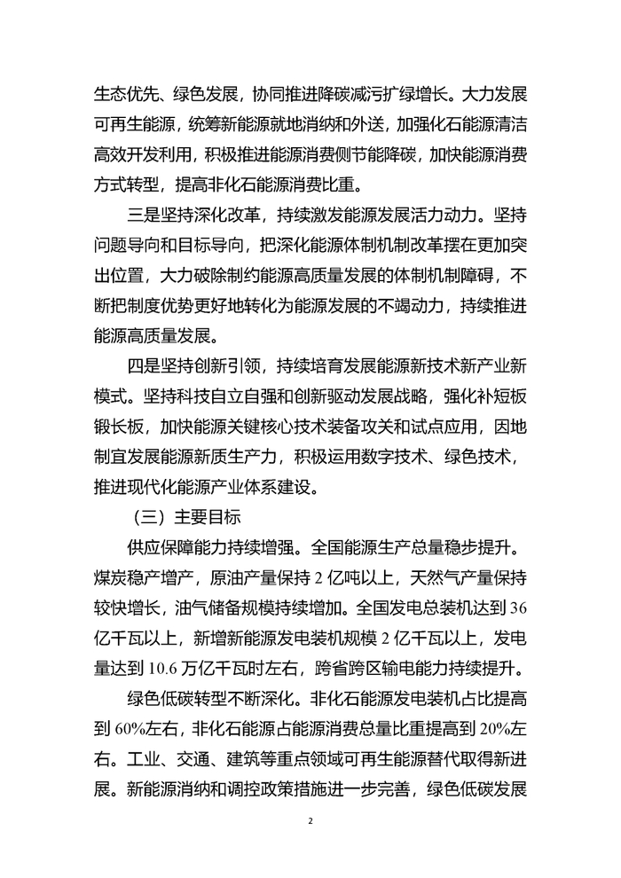 《指导意见》提出了2025年能源工作的主要目标:供应保障能力方面,全国能源生产总量稳步提升。煤炭稳产增产,原油产量保持2亿吨以上,天然气产量保持较快增长,油气储备规模持续增加。全国发电总装机达到36亿千瓦以上,新增新能源发电装机规模2亿千瓦以上,发电量达到10.6万亿千瓦时左右,跨省跨区输电能力持续提升。绿色低碳转型方面,非化石能源发电装机占比提高到60%左右,非化石能源占能源消费总量比重提高到20%左右。工业、交通、建筑等重点领域可再生能源替代取得新进展。新能源消纳和调控政策措施进一步完善,绿色低碳发展政策机制进一步健全。发展质量效益方面,火电机组平均供电煤耗保持合理水平。风电、光伏发电利用率保持合理水平,光伏治沙等综合效益更加显著。大型煤矿基本实现智能化。初步建成全国统一电力市场体系,资源配置进一步优化。